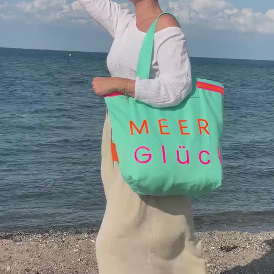 Canvas Shopper Tasche türkis MEER Glück