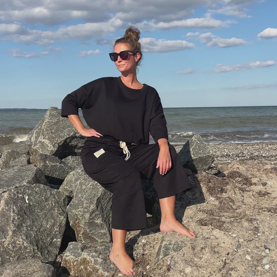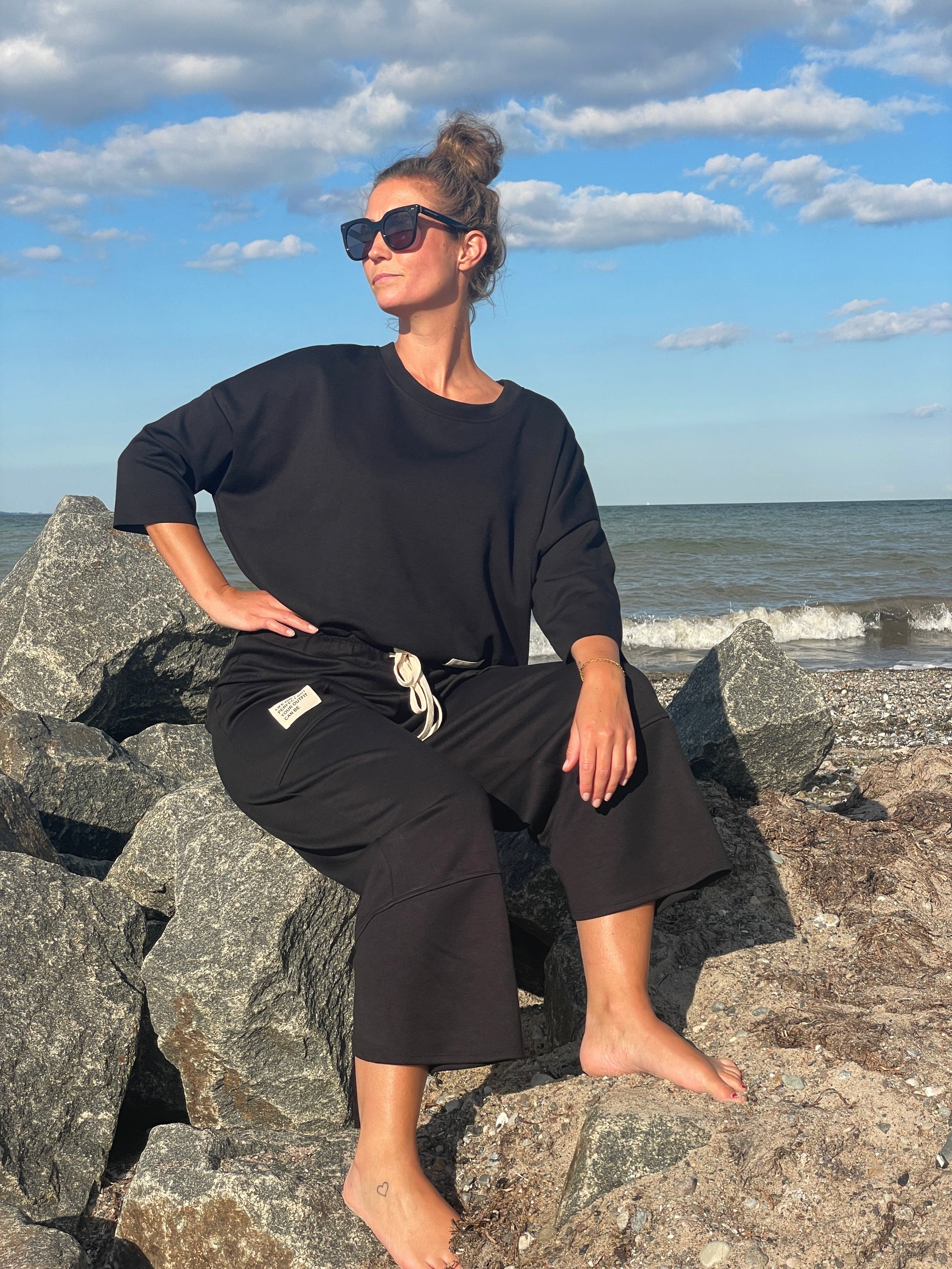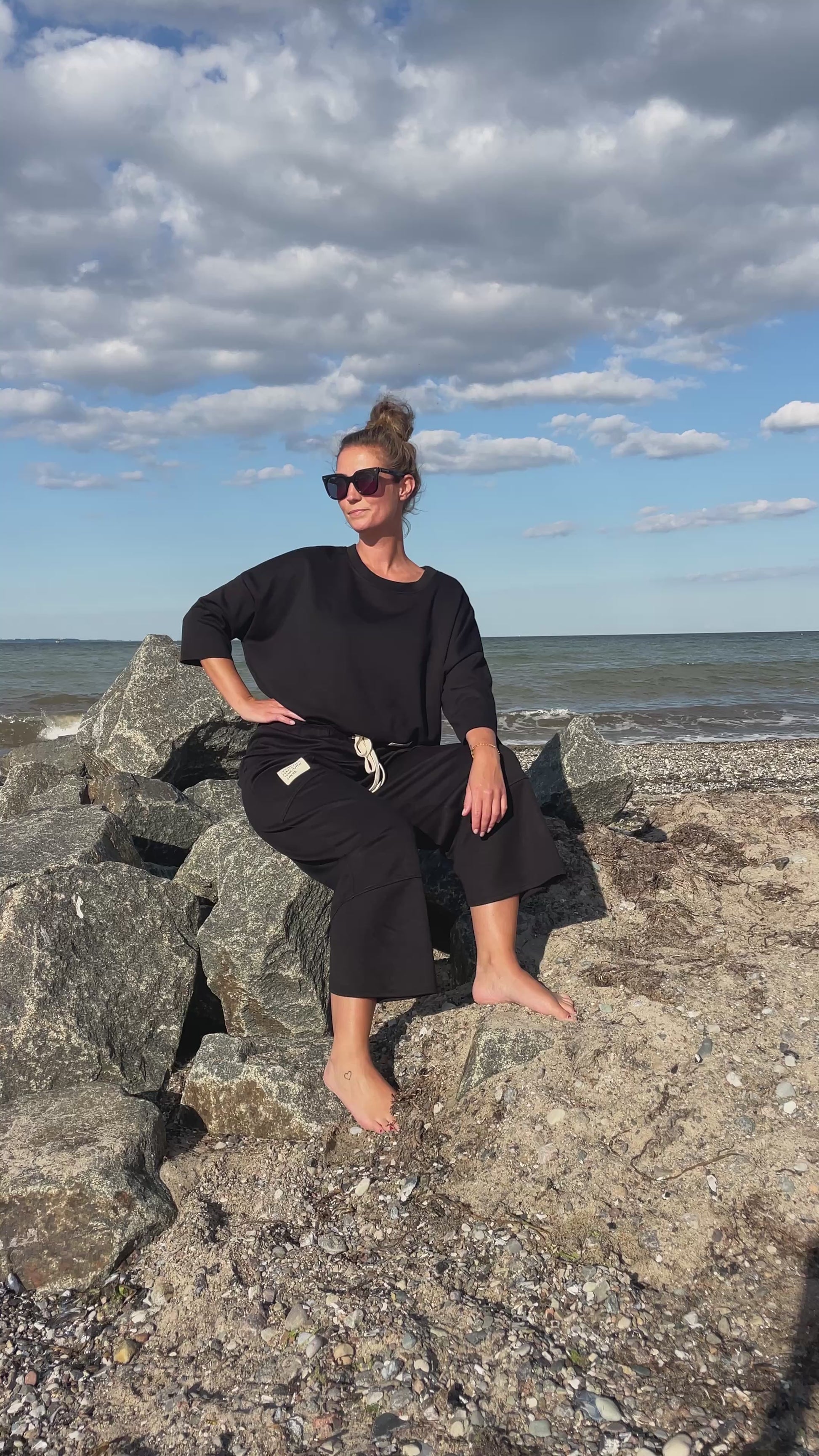 Stylisch, bequem und absolut alltagstauglich – dieser Zweiteiler in Schwarz ist dein perfekter Begleiter für Freizeit, Reisen oder entspannte Tage zu Hause.
