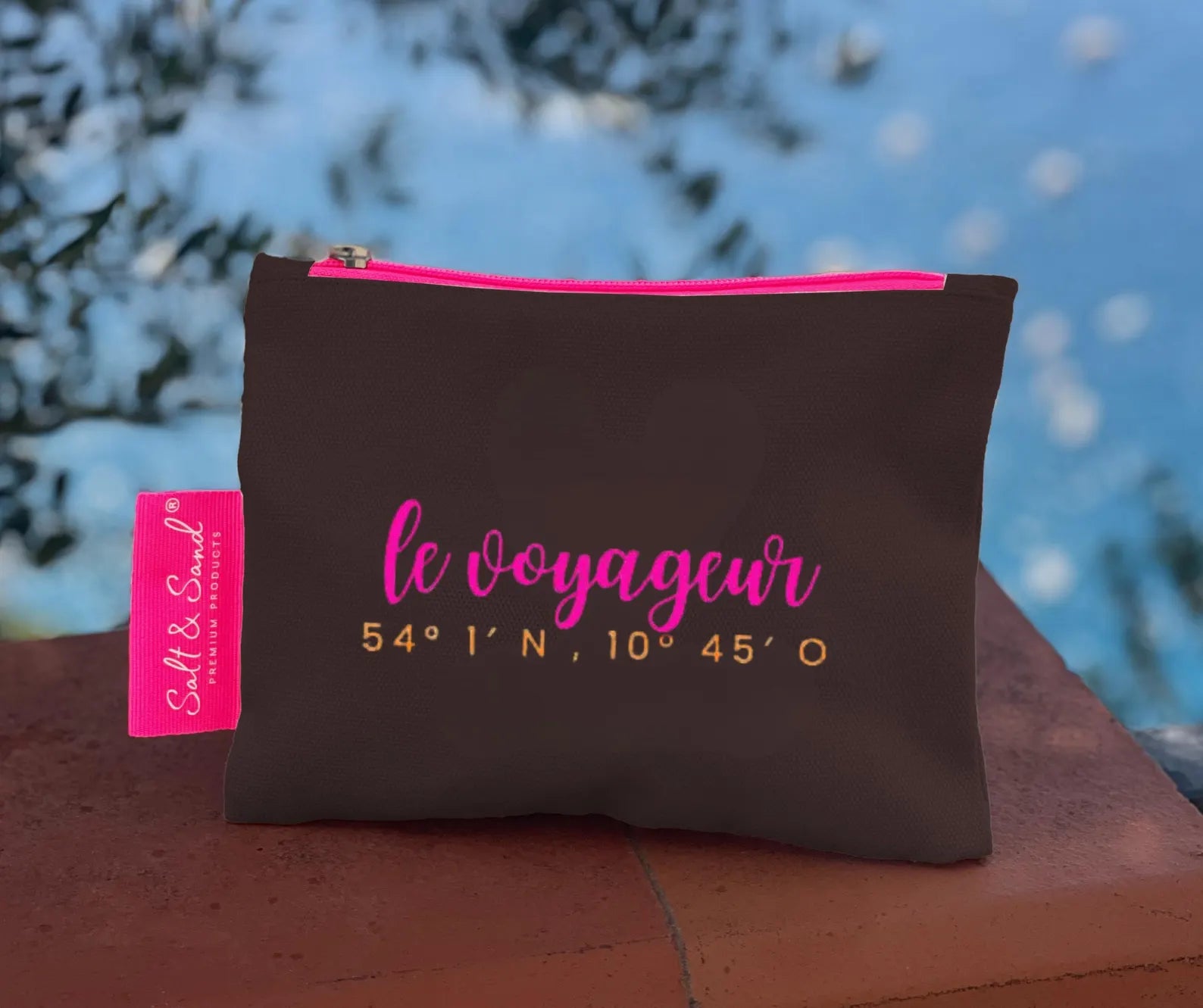 Die Tasche misst ca. 22 x 17 cm, ist angenehm flach und bietet dennoch genügend Platz für Schminkutensilien, Sonnencreme, Schlüssel oder kleine Reise-Essentials. Ideal als Kulturbeutel, Clutch oder praktisches Täschchen für unterwegs.