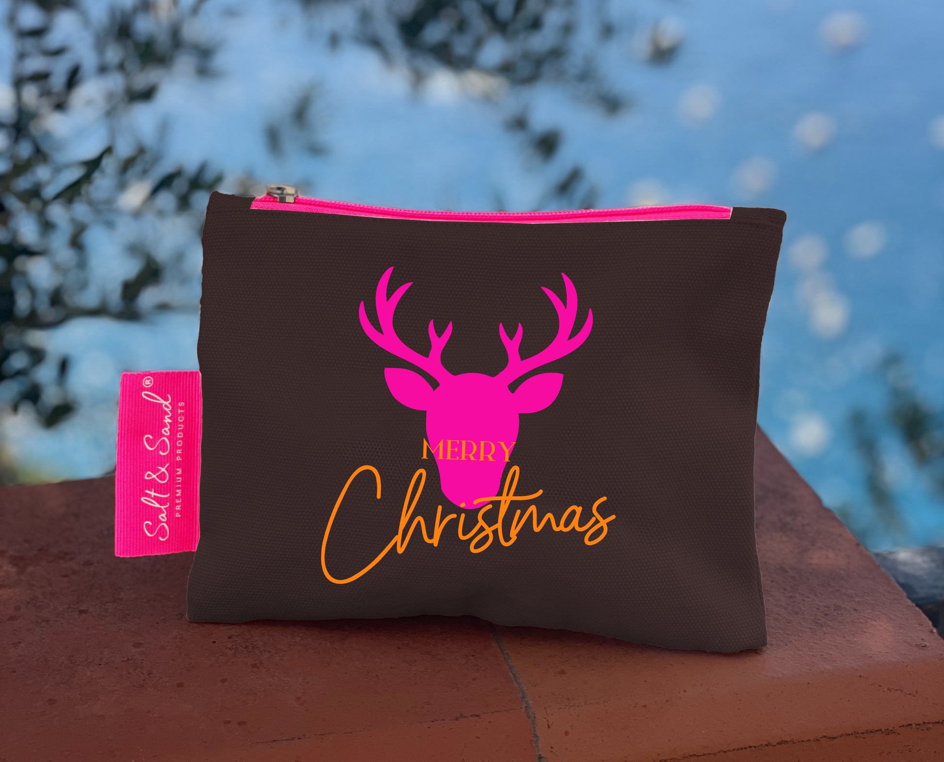 Kosmetiktasche aus Baumwoll Canvas l Brown Merry Christmas