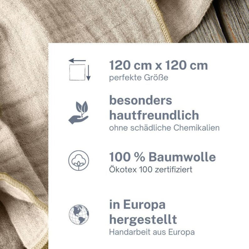 Dank der atmungsaktiven und temperaturausgleichenden Eigenschaft des Musselinstoffes sind unsere Tücher jahreszeitenunabhängige Allroundtalente!