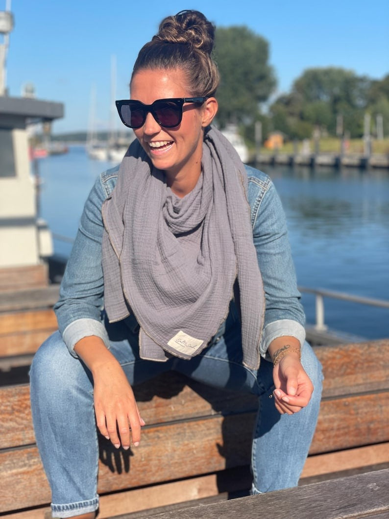 Mach dein Outfit zum Hingucker mit dem Salt & Sand Musselintuch in Anthrazit!