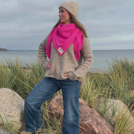 Mach dein Outfit zum Hingucker mit dem Salt & Sand Musselintuch in knalligem Pink!