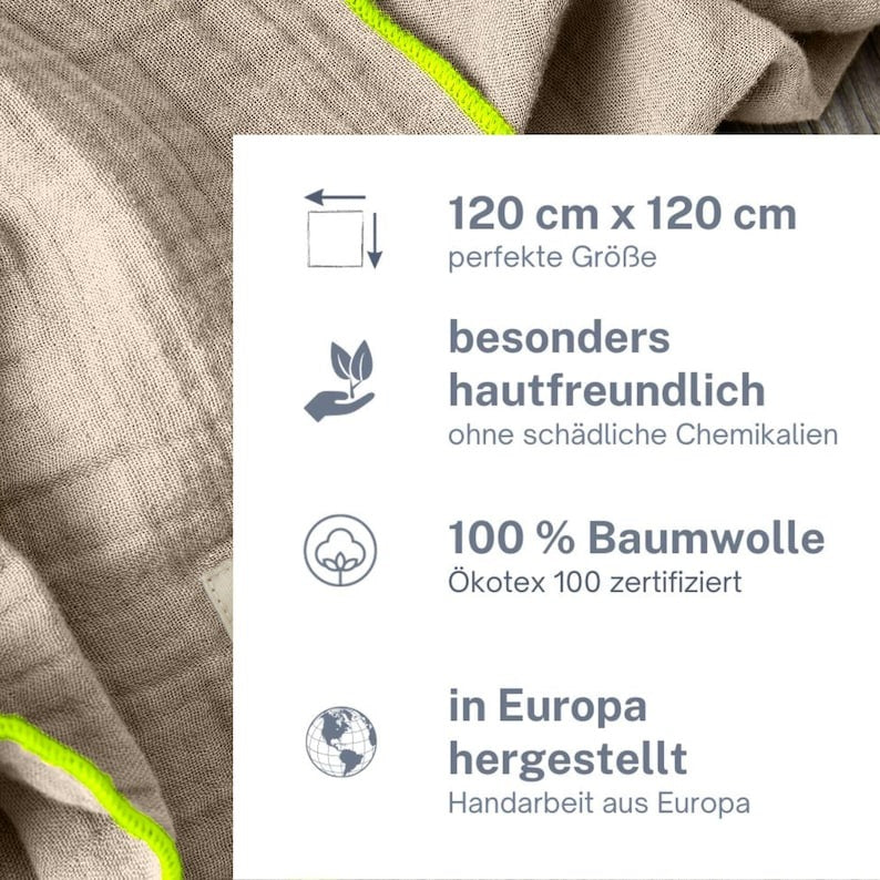 Dank der atmungsaktiven und temperaturausgleichenden Eigenschaft des Musselinstoffes sind unsere Tücher jahreszeitenunabhängige Allroundtalente!