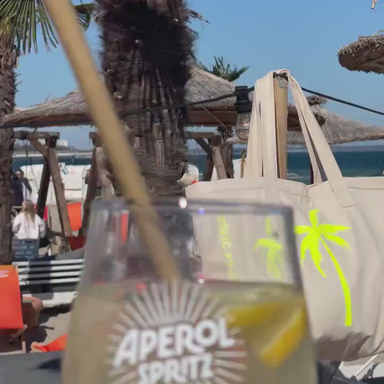 XL Canvas Shopper Strandtasche beige Palme